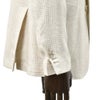リネン・コットン・シルクをブレンドした、上質な三者混生地。ざっくりとした織り組織が細かな凹凸を生み、立体的で奥行きのある表情を形成する、選び抜かれた厳選ファブリックです。自然な安心感のある肌触りに、シルク由来のほのかな艶と滑らかさが加わった贅沢な質感。爽やかな空気を通す清涼感が心地よく、汗ばむ季節でもドライに保ちます。