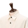 やや大きめに設計されたレギュラーカラーが、シンプルなルックスに程よいアクセントとして機能。フレンチフロントによるクリーンなフェイスに、胸ポケットとデザインに干渉しない腰ポケットを備えることで、羽織りとしての利便性を高めています。単体での着用はもちろん、アウター感覚で取り入れられる汎用性の高さも魅力です。