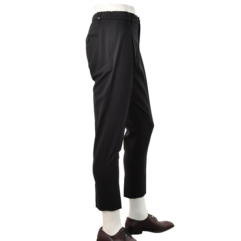 膝から裾にかけて強めのテーパードを聞かせているので、足周りのシルエットが綺麗に浮かび上がるスタイリッシュな設計です。裾もジャストレングス仕様となっているので、補正なく楽しめる構築も特徴です。
