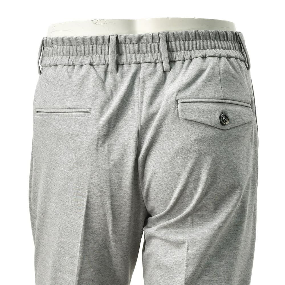 ご紹介するのは、クラシカルな佇まいとリラックスした穿き心地を両立させた、大人のスラックス BERTO / ベルト モデル。抜群の伸縮性を備えたジャージー生地を採用したイージー仕様のスラックスです。