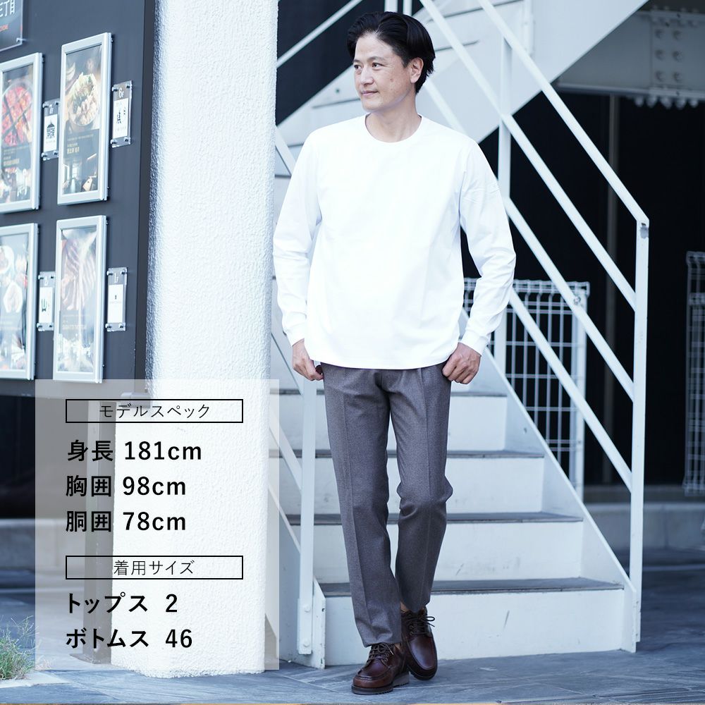 シルエットは、イタリアのサルトリアの知識と技術をベースに、日本人の体型に合わせた調整を施した拘りのモダンテーパード。ジャケットとの相性も良く、スマートな印象を引き立てます。