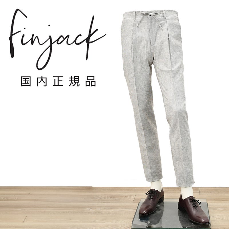 フィンジャック Finjack イージースラックス メンズ ストライプ柄テーパードパンツ ヌーヴォラライン 楊柳織り コットンリネンポリエステル ホワイト×グレー 超軽量 サイドシャーリング仕様 国内正規品 オクテット名古屋