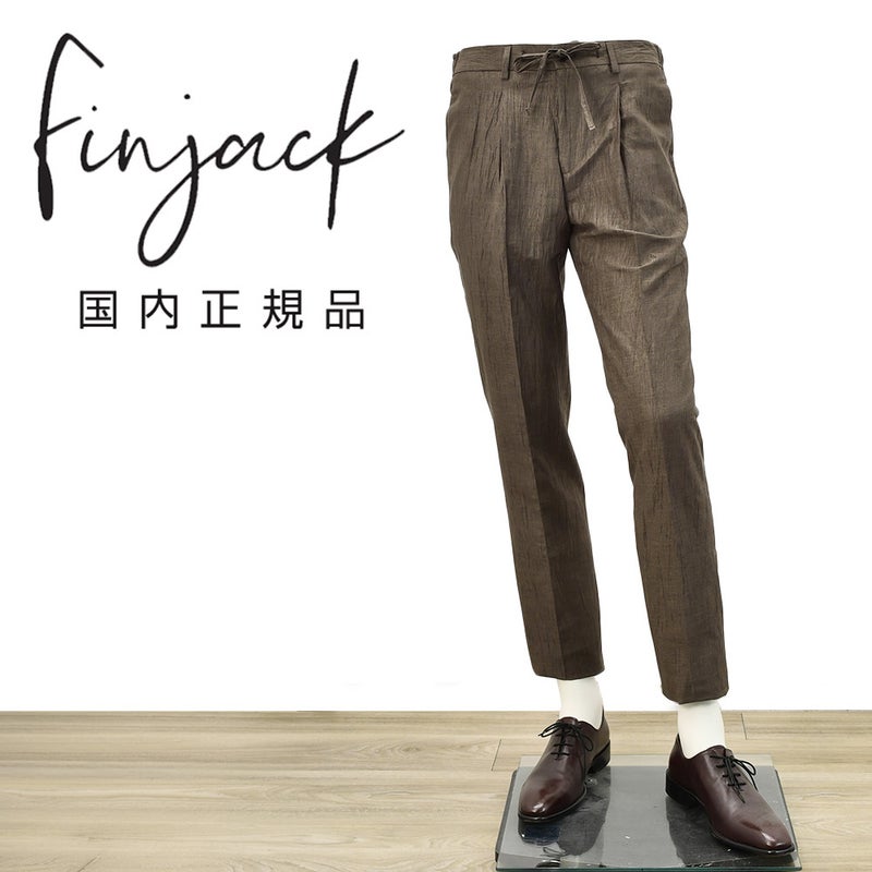フィンジャック Finjack イージースラックス メンズ テーパードパンツ ヌーヴォラライン 楊柳織り コットンリネンポリエステル ダークブラウン 超軽量 サイドシャーリング仕様 国内正規品 オクテット名古屋