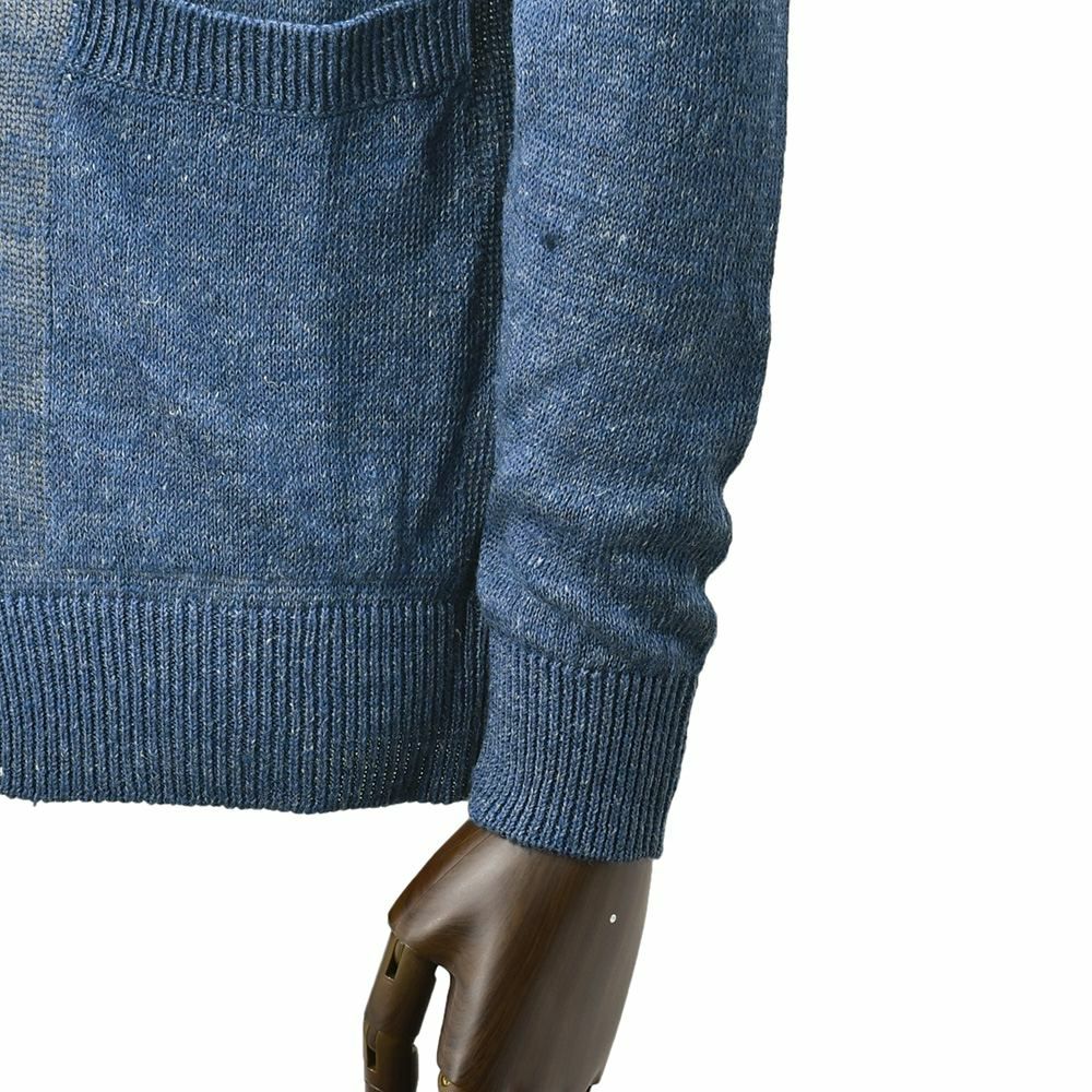 7ゲージのカーディガンは、通気性があり、春のシーズンっだけでなく、真夏の羽織りとしても着用できる涼しげな雰囲気を存分に漂わせております脱ぎ着も非常に楽チンであり、汗を掻いても、肌に纏わり付かないのも嬉しいポイント。冷房が効いた部屋などの防寒着や気温が下がる夕方などにも対応できる汎用性に長けた1着です。