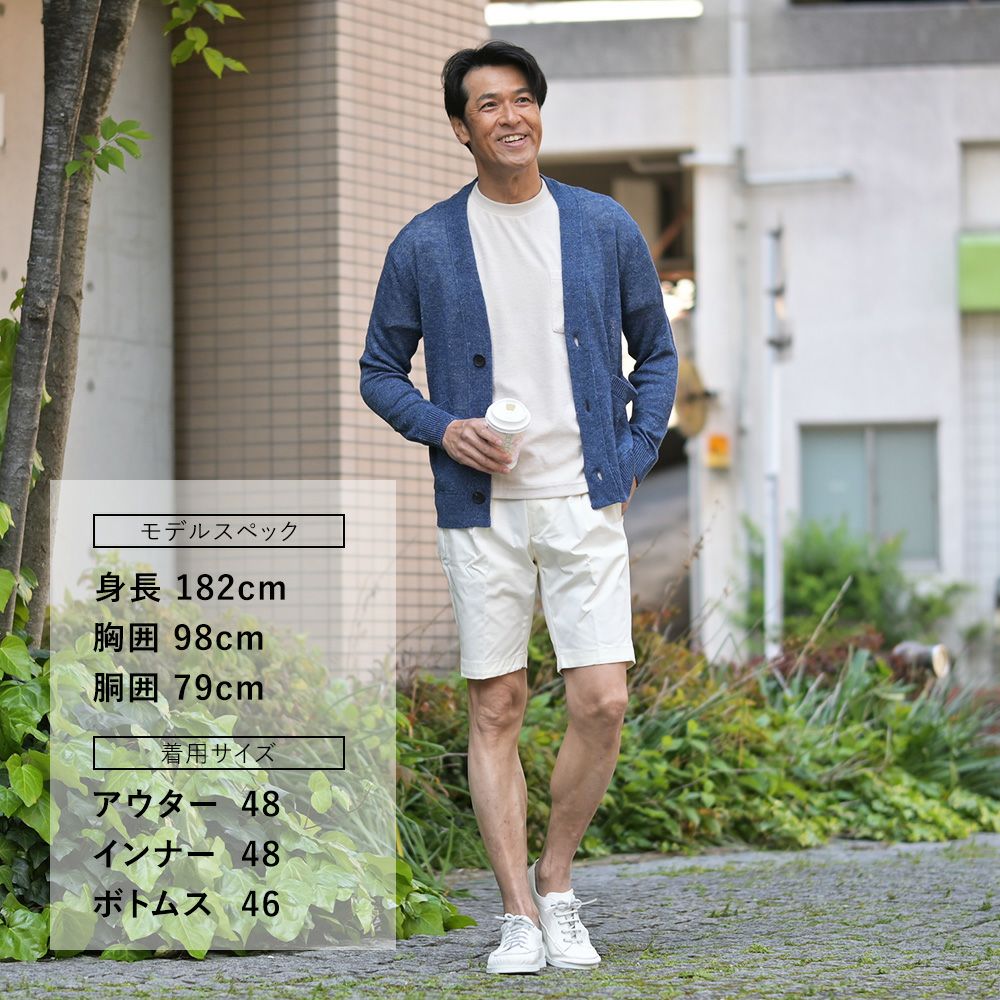 本品は、ニット専業メーカーが贅沢な素材をふんだんに使用し、春夏のシーズンに快適な羽織りアイテムとして活躍するVネックカーディガン。涼しさを感じられる、ほんのりざっくりとした編み地で仕立てた羽織りニットのご紹介です。
