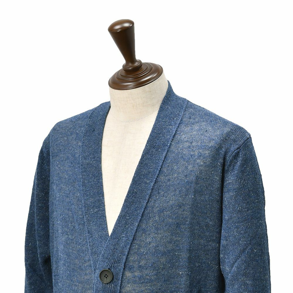 7ゲージのカーディガンは、通気性があり、春のシーズンっだけでなく、真夏の羽織りとしても着用できる涼しげな雰囲気を存分に漂わせております脱ぎ着も非常に楽チンであり、汗を掻いても、肌に纏わり付かないのも嬉しいポイント。冷房が効いた部屋などの防寒着や気温が下がる夕方などにも対応できる汎用性に長けた1着です。