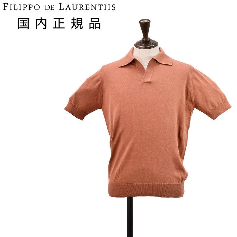 フィリッポ デ ローレンティス FILIPPO DE LAURENTIIS スキッパーニットポロシャツ メンズ サマーニット Sublime Cotton サブライムコットン テラコッタ 12ゲージ 袖・裾リブ仕様 国内正規品 オクテット名古屋