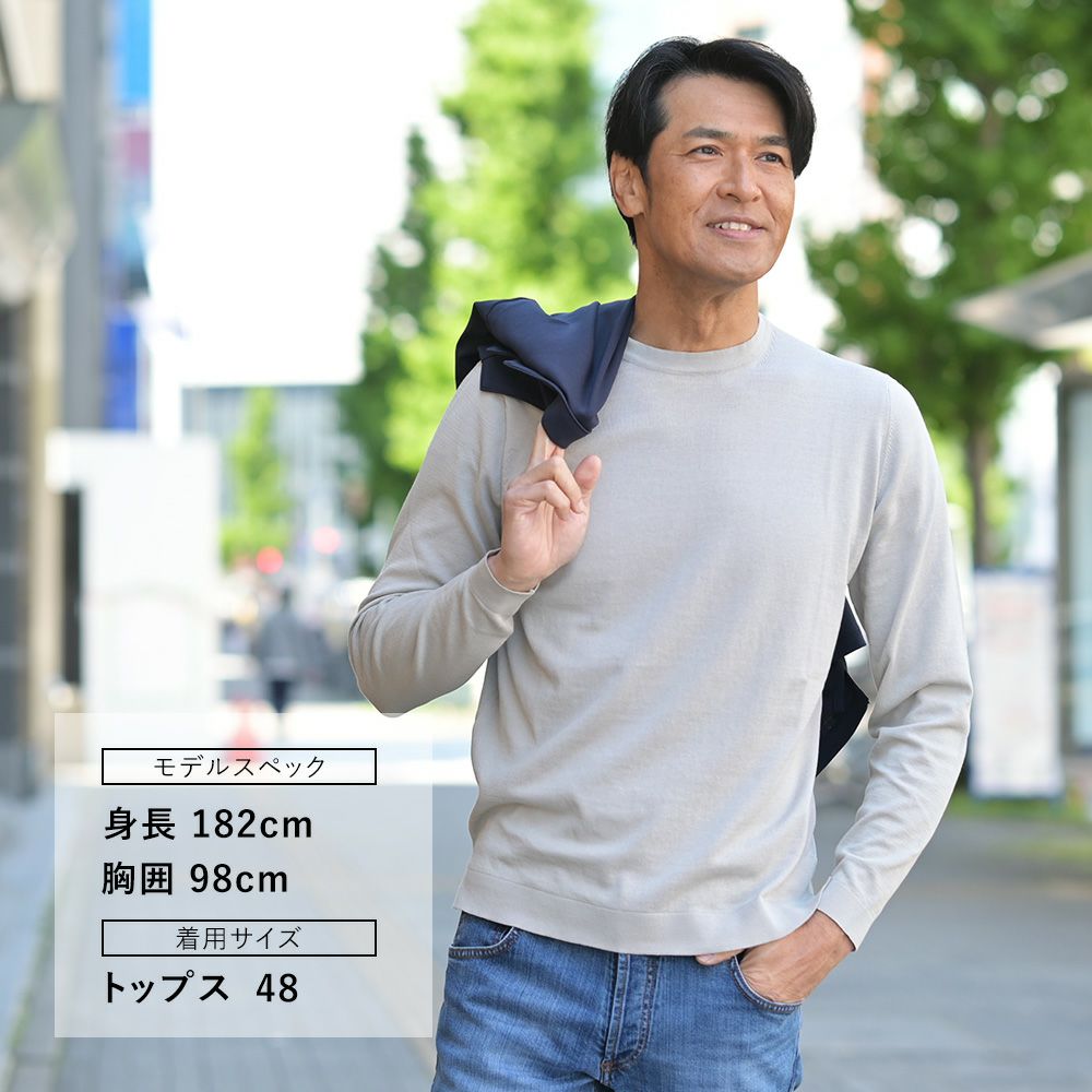 オシャレをとことん追求したい男性にお届けするのは、程よい抜け感と品の良さが漂うカットソー感覚で着用する事の出来る長袖のニット。夏のシーズンには涼しく過ごしたいけど、袖はなるべく隠したい男性にとっておきのニットが此方になります。