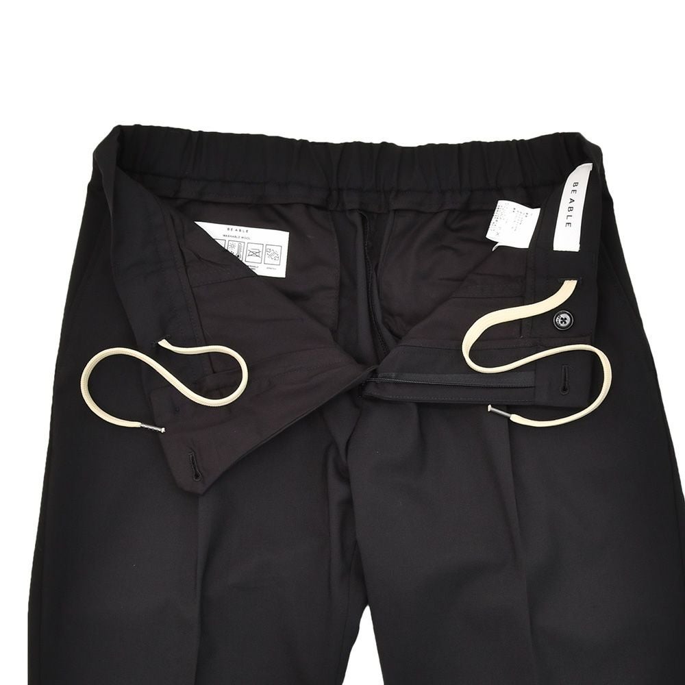 ビーエイブル BE ABLE テーパードスラックス メンズ 1プリーツパンツ RICCARDO ウォッシャブルウール ブラック 黒 バックシャーリング仕様 ドローコード ストレッチ 国内正規品 でらでら公式 ブランド