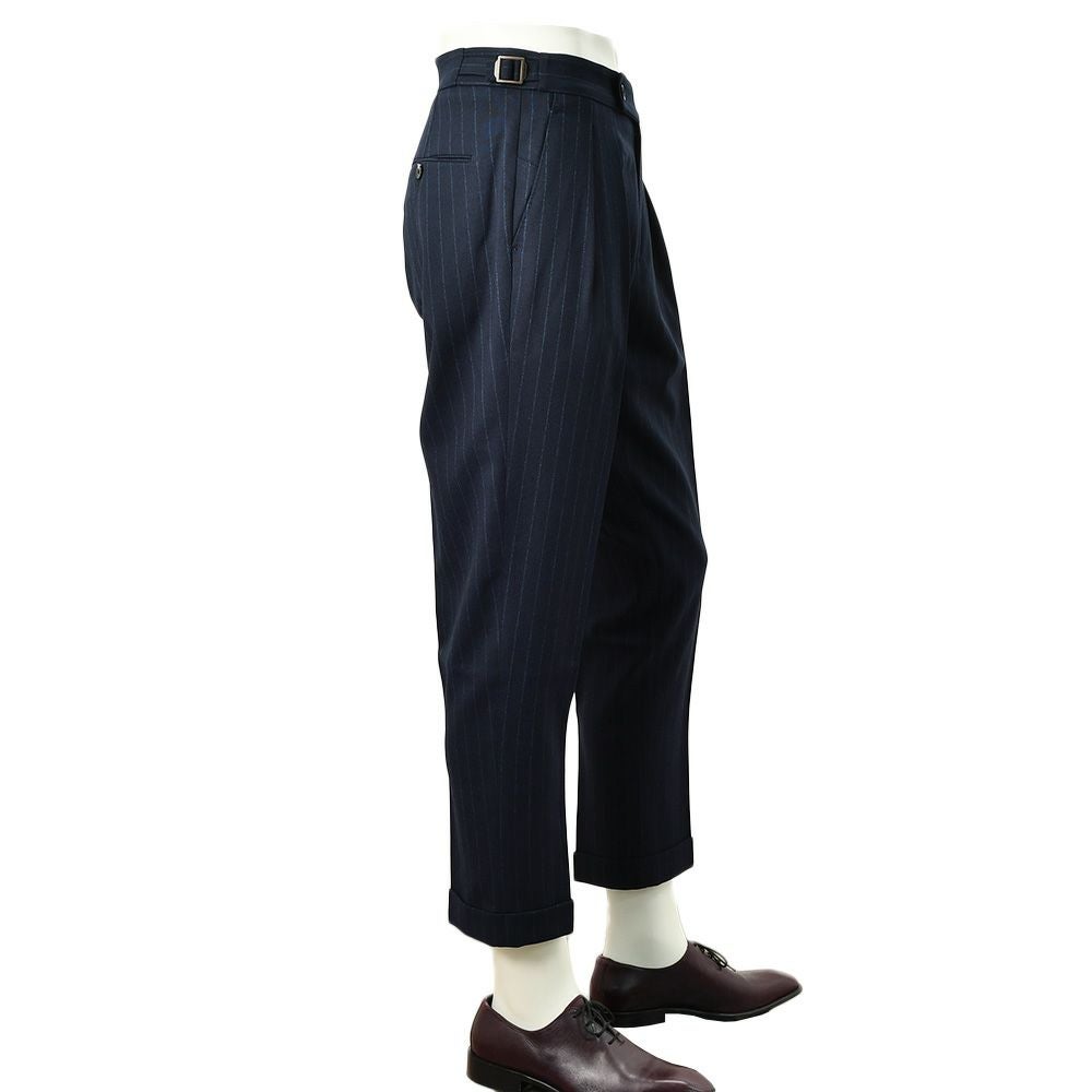 ベルウィッチ BERWICH スラックス メンズ SCOTCH スコッチ 2インプリーツパンツ ハイツイストライトウール ネイビー×ブルー アジャスター調節 ワイドテーパード クロップド丈 国内正規品 オクテット名古屋