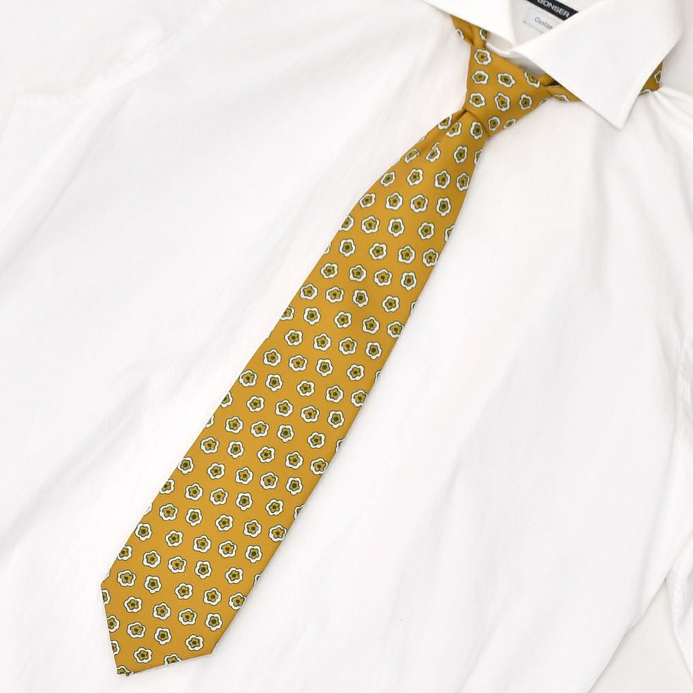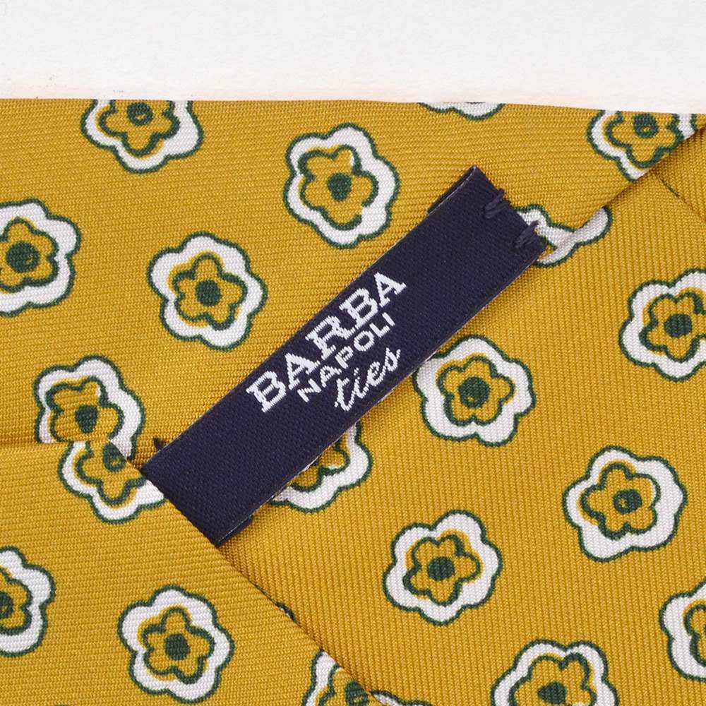 バルバ BARBA ネクタイ メンズ セッテピエゲ 7つ折り スクエア柄デザイン シルク100% イエロー マスタード 大剣7.5cm 光沢 ビジネス小物 イタリア製 プレゼント 贈り物 国内正規品 でらでら 公式ブランド