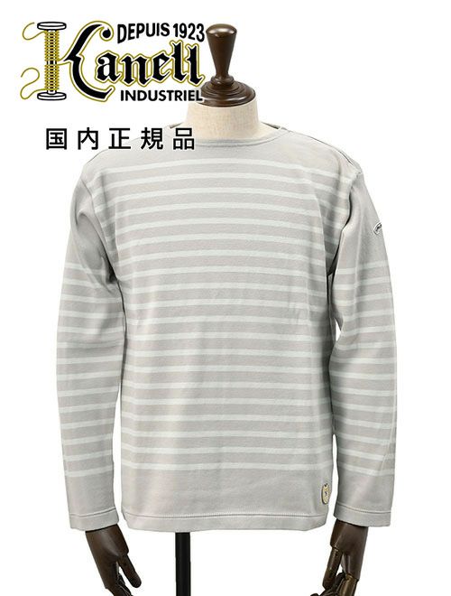 カネル KANELL バスクシャツ メンズ 長袖ニットソー ボナパルト BONAPARTE クルーネック ライトグレー×ウォーターグリーン ボーダー柄 オーガニックコットン ヴィンテージリブ 国内正規品 でらでら 公式ブランド