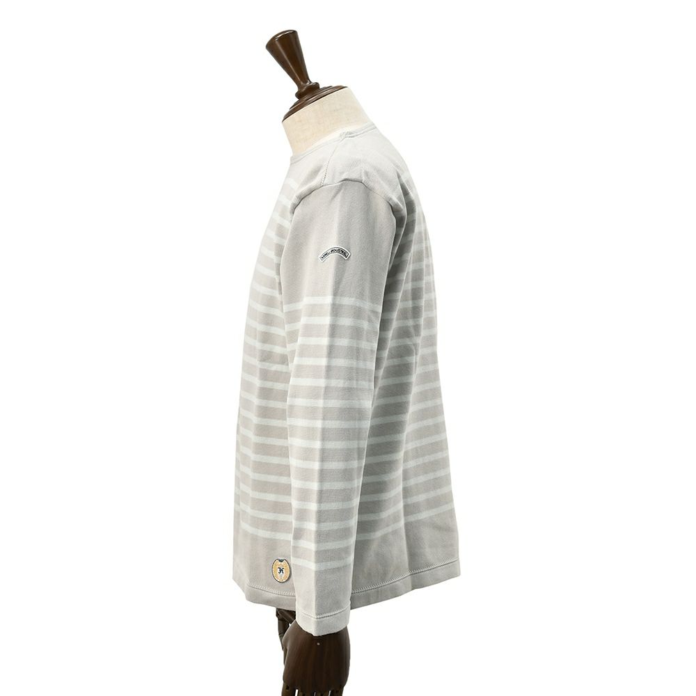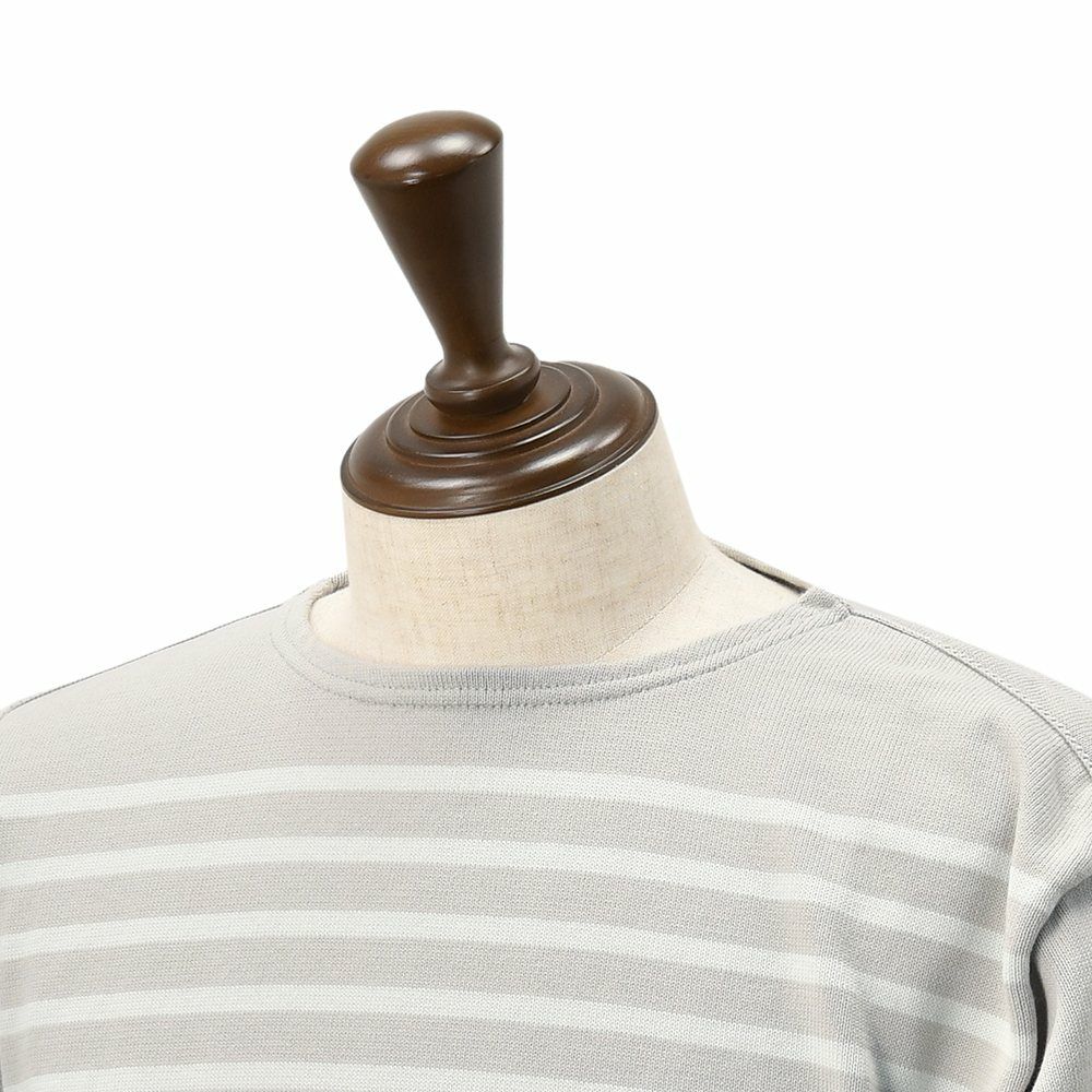 5. カネル KANELL バスクシャツ メンズ 長袖ニットソー ボナパルト BONAPARTE クルーネック ライトグレー×ウォーターグリーン ボーダー柄 オーガニックコットン ヴィンテージリブ 国内正規品 でらでら 公式ブランド