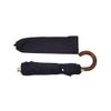 ウッド素材のキャメルブラウンの持ち手、濃紺の生地、そしてメタルパーツを用いた構成は、クラシックかつ洗練された佇まいを演出。片手で持った時のハットやマフラー等の装飾性や、手にしてカッコよく洒落るステッキのような、スタイリングの主役になる存在感もあります。