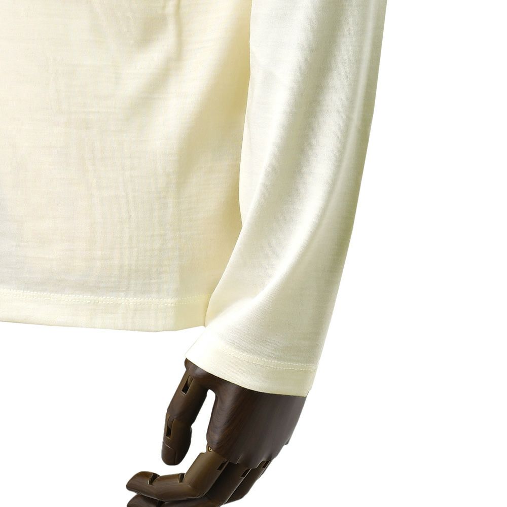 素材は、スーパー100'sの繊細なウール糸を天竺編みに仕立てた、上質なウールジャージー。クリア仕上げを施した細番手の糸を24ゲージで丁寧に編み立て、ふんわりとした柔らかさと適度な厚みを兼ね備えた、贅沢な質感に仕上がっています。