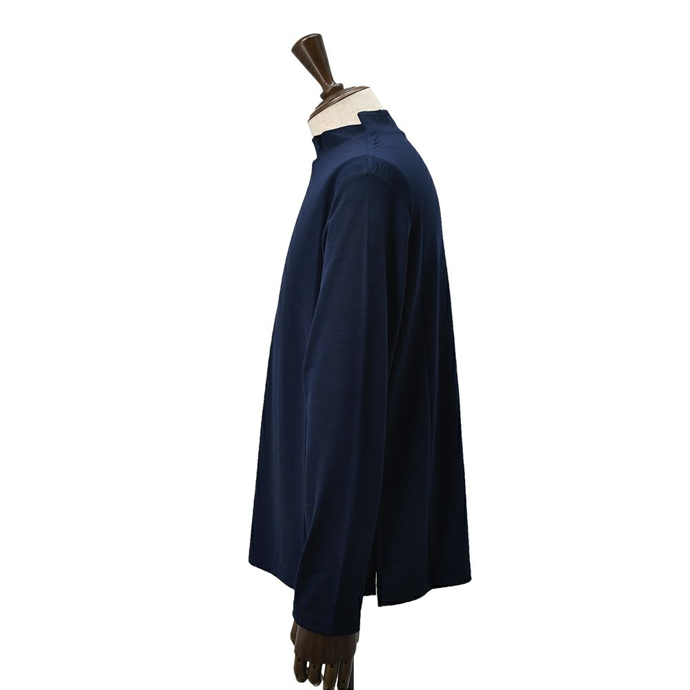 本品は、世界に誇る高品質のカットソーを作り出すジャパンメイドで仕立てられたモックネック長袖カットソー。