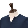 程よく開いたネックラインが顔まわりをすっきりと見せ、軽やかで爽やかな印象を演出。クルーネックとは異なるニュアンスを持ち合わせ、大人の抜け感と品の良さを叶えています。