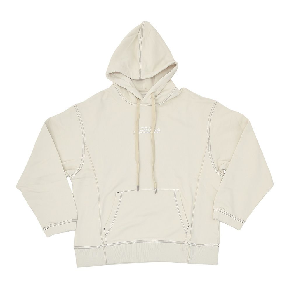 リプレイ REPLAY プルオーバーパーカー メンズ コットンスウェット生地 ライトベージュ エンボスラバープリント 裏パイル仕様 コットンテリー リラックスフィット 国内正規品 オクテット名古屋