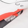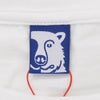 左胸元には、フラワーモチーフかと思いや、ボードが並んだ描写であり、後ろは「Wipe Out」がテーマとなった、海、波乗りの景色を愛らしくデザイン。左袖端にはアイコンとなる青色の織りタグ。