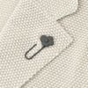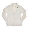 フロントにはブランドを象徴するブートニエールクリップを配し、控えめながらもアイコニックな存在感を演出するフェイスに。ノッチドラペルと2ボタン仕様による整ったデザインが、インナーを選ばず洗練されたVゾーンを構築します。
