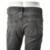 カラーは、ブラックデニムを丁寧に色落ちさせたダークグレー色。やすり加工による白っぽさが表現されており、自然な縦落ち感を作り出しております。
