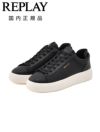 リプレイ REPLAY レザースニーカー メンズ レースアップシューズ カーフレザー ブラック 黒 型押しブランドロゴデザイン 厚底ラバーソール ヒールブランドパッチ 国内正規品 オクテット名古屋