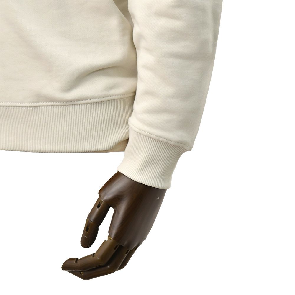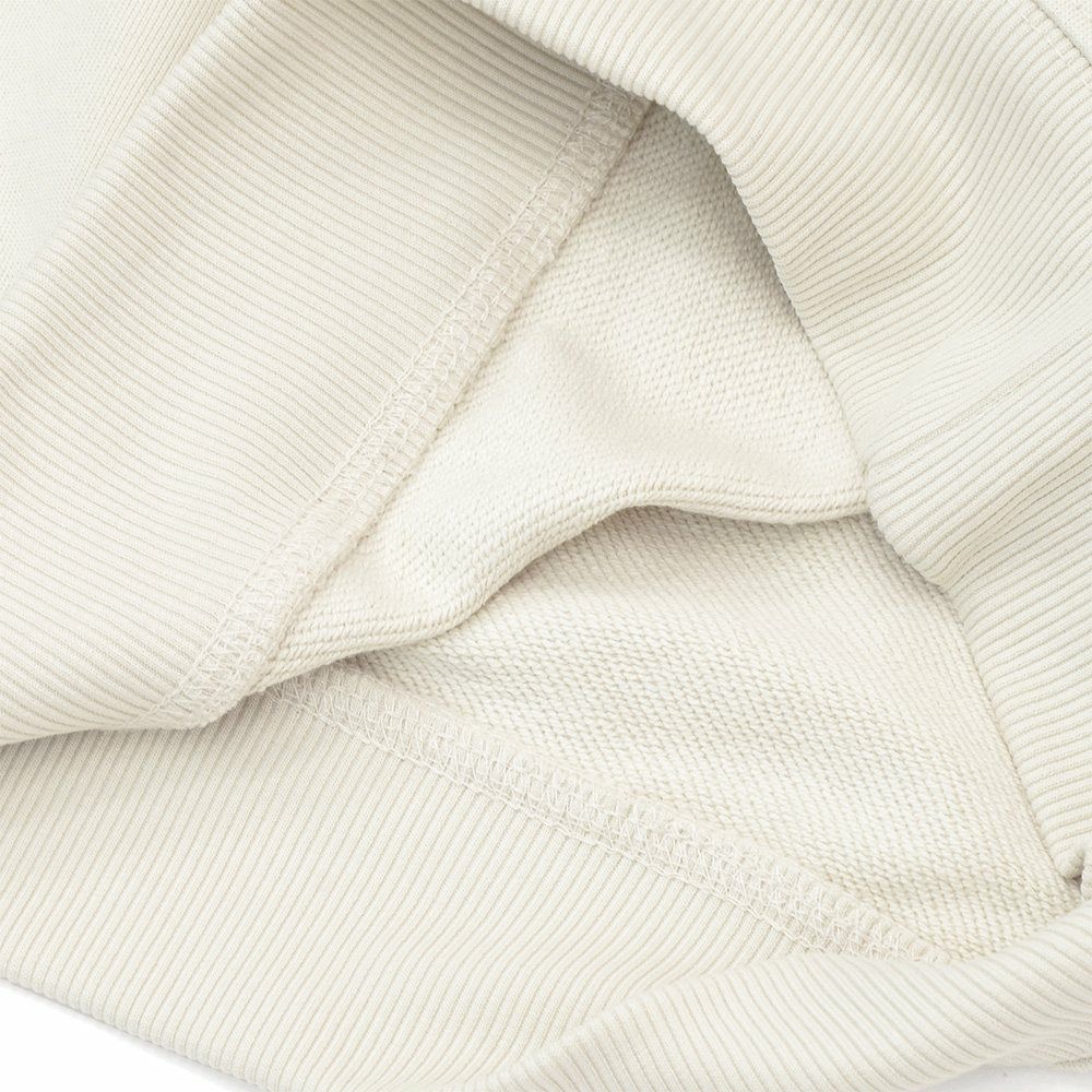 素材は、程よい厚みで快適な着心地を叶える、ハイクオリティなコットンスウェット生地 。上質なコットンを細やかに編み上げ、表面はとても滑らかで高級感のあるテクスチャーに、裏側ではふっくらとした柔らかなタッチで、優しい温もりを肌に伝える素材、フレンチテリーになります。