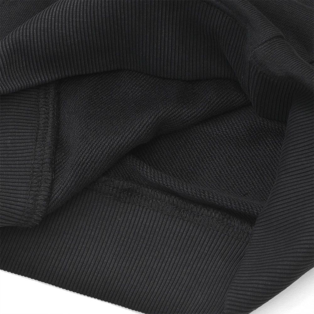 ディテールは非常にミニマルであり、長めのフード調節ドローコードに、左胸にグレーのブランドロゴ刺繍をさりげなく施したデザイン。また、背面にブランドのアイコンをタグデザインで落とし込み、どの角度から見てもアクセントを加えてくれる一着。