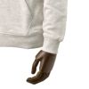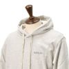 ディテールは非常にミニマルであり、長めのフード調節ドローコードに、左胸にグレーのブランドロゴ刺繍をさりげなく施したデザイン。また、背面にブランドのアイコンをタグデザインで落とし込み、どの角度から見てもアクセントを加えてくれる一着。