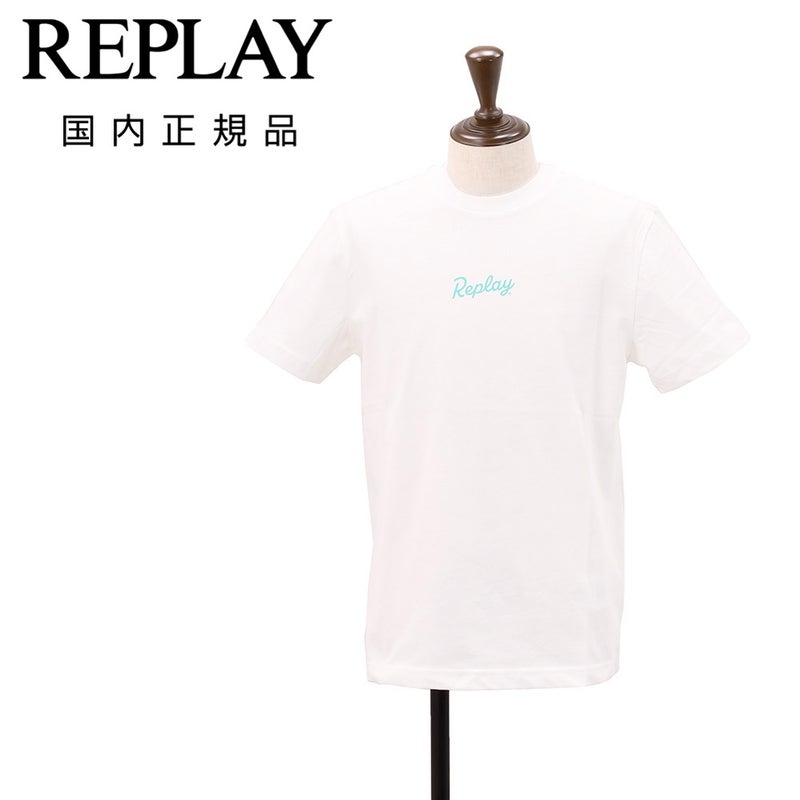 リプレイ REPLAY 半袖ロゴTシャツ メンズ クルーネックカットソー ピュアコットンジャージー ホワイト 白 バックプリントデザイン レギュラーフィット 国内正規品 オクテット名古屋