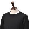 無地のシンプルなデザインながら、首元・袖口・裾に施されたさりげないダメージ加工がヴィンテージライクな味わいを演出。そして左袖には、黒地にブランドロゴが入ったタグがさりげなく縫い付けられており、ミニマルな中にも確かな個性と存在感を添えています。