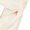 フロントはジップフライ仕様で、実用性とスマートさを兼ね備えた作り。さらに、スラントポケットや天狗鼻ディテール、コインポケット、両玉縁バックポケットといったクラシカルな仕様も健在。右後ろにあしらわれたシルバーの“R”ロゴが、さりげないアクセントに。