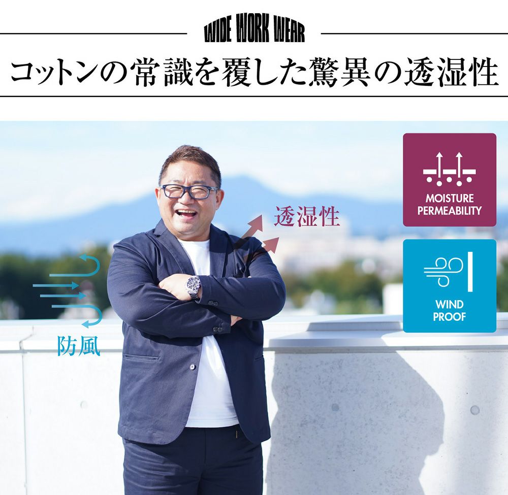また、同素材のセットアップパンツとあわせることで、スーツ的によりエレガントな着こなしも可能にしてくれる、ポッチャリ体型の男性の見方的アイテムを創りたかったのです。