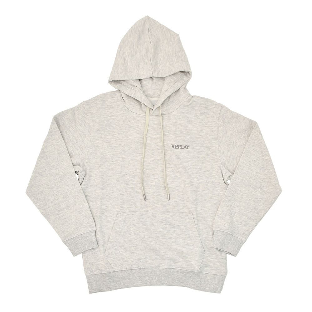 リプレイ REPLAY プルオーバーパーカー メンズ フーディースウェットシャツ コットンテリー素材 ライトグレー ブランドロゴ刺繍 裏パイル ドローコード付き 国内正規品 でらでら 公式ブランド