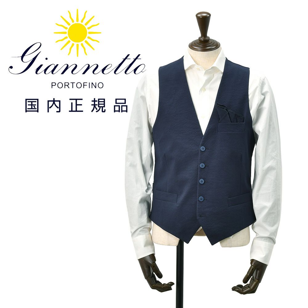 ジャンネット GIANNETTO シングルジレ メンズ ベスト GILET シアサッカー生地 ネイビー 紺 軽量 総裏地 同素材チーフ付属 イタリア製 国内正規品 オクテット名古屋
