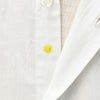 ボタンには、厚みを抑えた貝ボタン製。このボタンを、 高級ハンドメイドシャツ 特有となる「鳥足」(ザンパテ・グリアート)ボタンが付けられており、 ボタンが斜めに付く事でボタンが 掛けやすい&外しやすくなっているという職人のハンドメイドの技術が備わっています。両サイドの裾には、ガゼットと呼ばれる補強布が付けられていることにより、縫い合わせのホツレを軽減。 更に、アイコンとなる太陽マークは第二と第三ボタンの間に刺繍で施されている等、細部まで職人の手が加えられています。