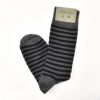 ご紹介するソックスは、繊細なリブ編みデザインで構成し、ボーダー柄をデザインしたロングソックス。程よいピッチで演出したボーダーは、アクセントになりますが、主張し過ぎず、足元に洒落っ気を作り出してくれる一足に仕上がっております。