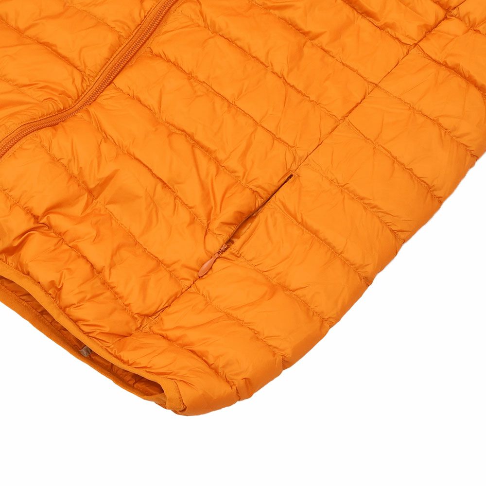 そんなお悩みを解決してくれるのが、こちらの超軽量且つコンパクトに折りたたんで、専用のポーチに収納できる、持ち運びにも便利なライトダウンジレ。