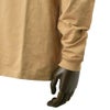 着丈の長さも全体に対してバランスが良く、ジャケットの着丈からは、はみ出さず、パーカーなどとのレイヤードは可能な、絶妙なサイジングが、より一層使い回しの効く汎用性をひろげました。