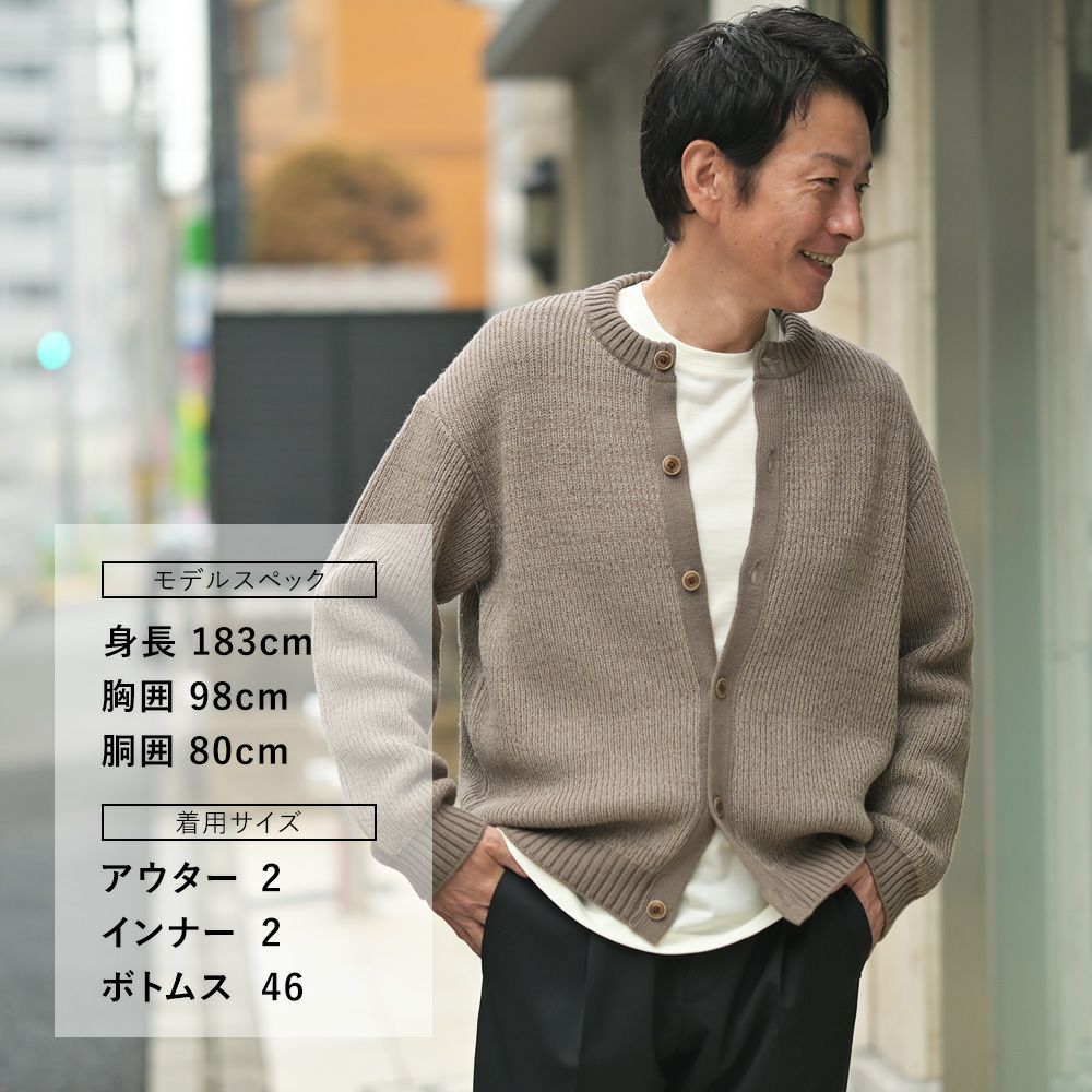 柔らかくもじんわり暖かく、春先や初秋の重ね着にもぴったりの着心地。1枚でさらりと纏えば、自然な落ち着きとスマート表情を同時に楽しめ、カーディガンとして羽織ればコーディネートに奥行きをプラスします。リラックス感と品格を兼ね備えた、日常に寄り添う特別な一着です。