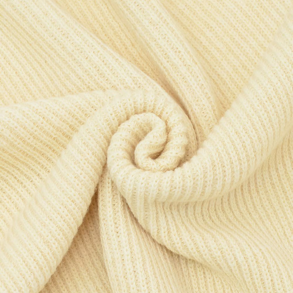 独自のAiry SPUN製法により、軽量ながらもしっかりとした編み地を実現し、麻のようなドライタッチで、暖かくも清涼感に満ちた着心地です。ふんわりと柔らかく、肌に触れるたび心地よさが広がる風合いは、自然な動きにも寄り添い、長時間の着用でも快適。通気性に優れ、中間シーズンの重ね着にも最適です。
