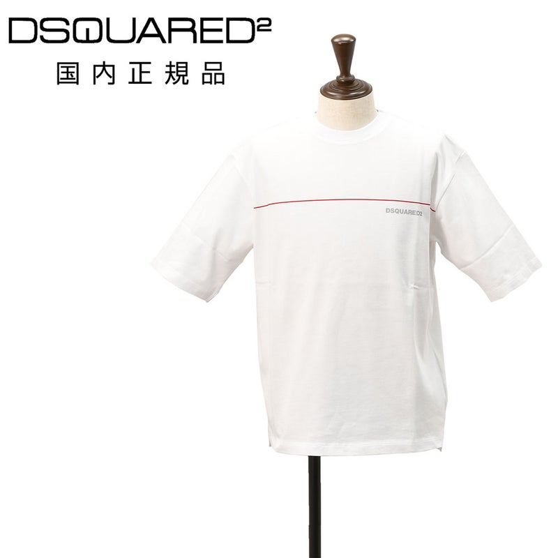 DSQUARED2 / ディースクエアード より届いた、都会的な感性をさりげなく薫らせるプリントTシャツ。胸元へ水平に走る一本の細いレッドラインが、クリーンなボディにシャープなリズムを刻むデザインです。