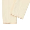 股上はやや深めに設定し、安定感のある穿き心地を構築。裾へ向かってほんのり絞りを加えることで、自然なレッグラインを描きます。身体のラインを拾いにくく、幅広い体型に馴染みやすい点も魅力です。