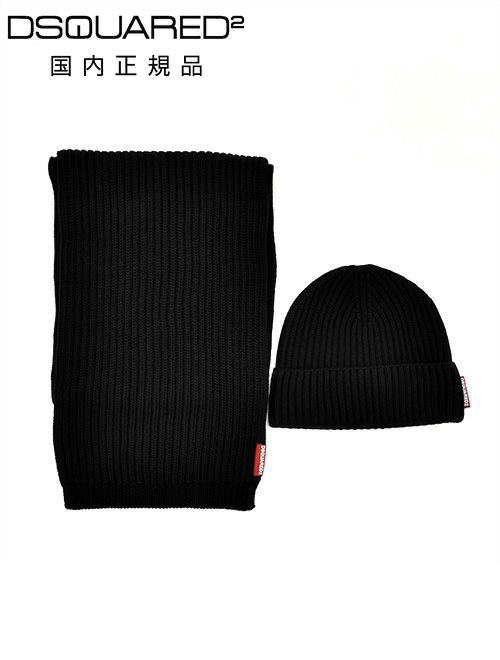 ディースクエアードがリリースした本品は、マフラーとキャップを、同じカラーのリブで揃える事でコーディネートがすんなりと纏まり、都会的に決まる便利なセット。