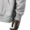 シンプルなデザインでありますが、どこかリッチな雰囲気を感じる秘訣は、生地の光沢感にあります。光沢感のある素材を巧みに構築することで、表面の立体感や陰影を表現することで、カジュアルな印象のあるスウェットパーカーもワンランク上のスタイルに魅せてくれます。これが大人の男性にも取り入れやすく、気分を高めてくれるアイテムに仕上がっています。