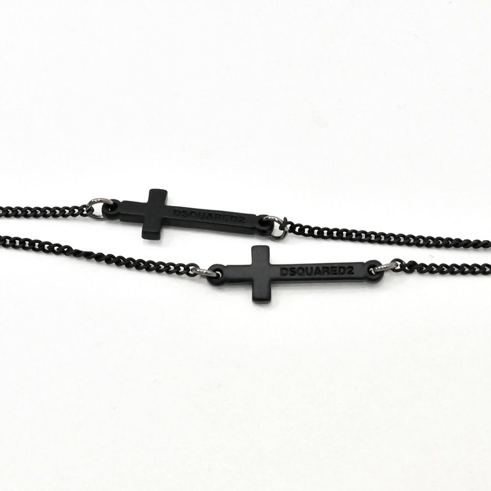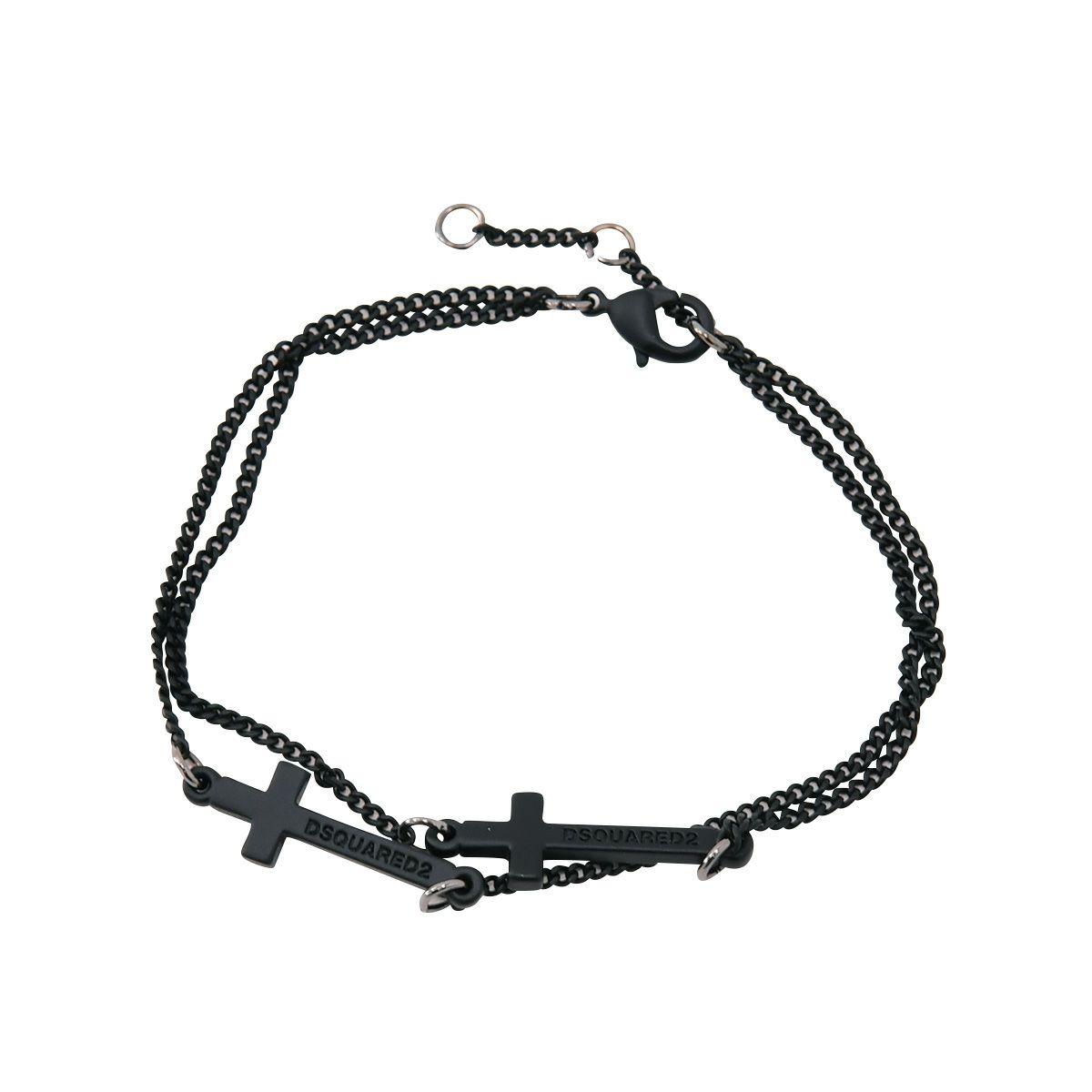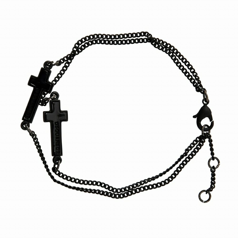 ディースクエアード アクセサリー ブレスレット クロス ディースクエアード DSQUARED2 ブレスレット ブラックカラー 2連クロスチェーン アンクレットにも レディース兼用 アクセサリー イタリアブランド 国内正規品