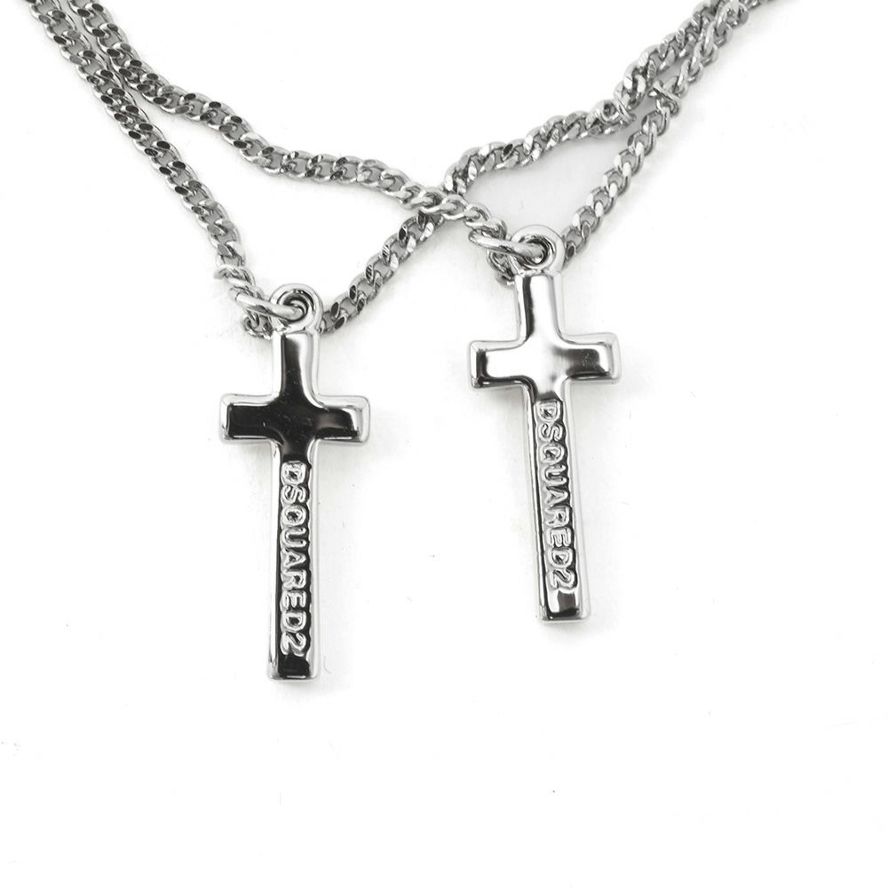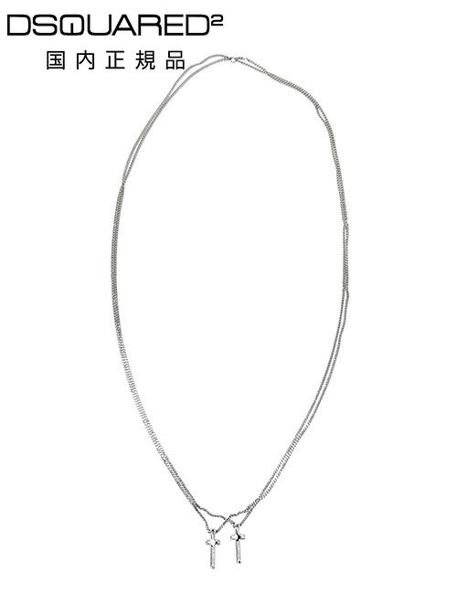 ディースクエアード DSQUARED2 ネックレス メンズ 2連チェーン クロスモチーフ シルバー 真鍮 真鍮 ジュエリー プレゼント ギフト 贈り物 国内正規品 でらでら 公式ブランド