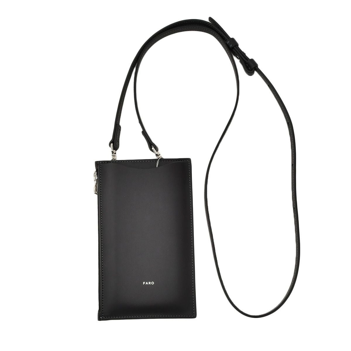 ファーロ FARO スマートフォンショルダーケース メンズ コンパクトウォレット スムースカーフレザー ブラック 黒 5段階調節ベルト カードポケット ジップファスナー開閉 国内正規品 でらでら公式 ブランド