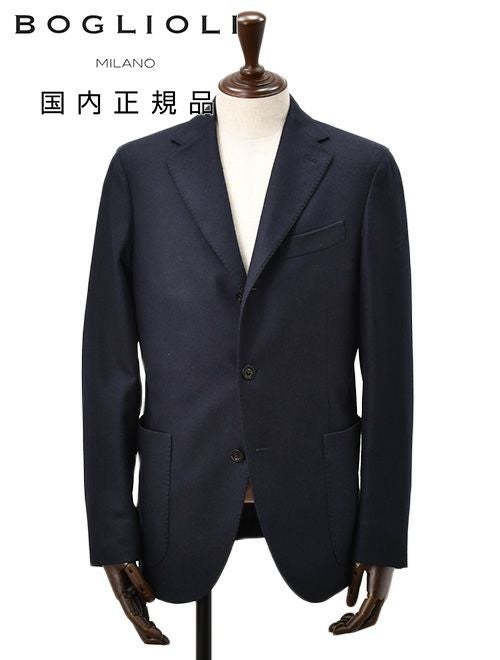 ボリオリ BOGLIOLI シングルジャケット メンズ DOVER ドーバー 段返り3つ釦フロント ネイビー 紺 ウール混生地 ノッチドラペル アンフィニッシュ袖 ボタン付け代金込み 国内正規品 でらでら 公式ブランド