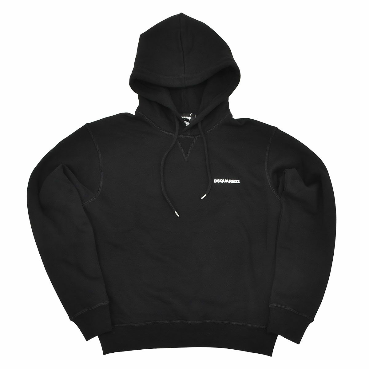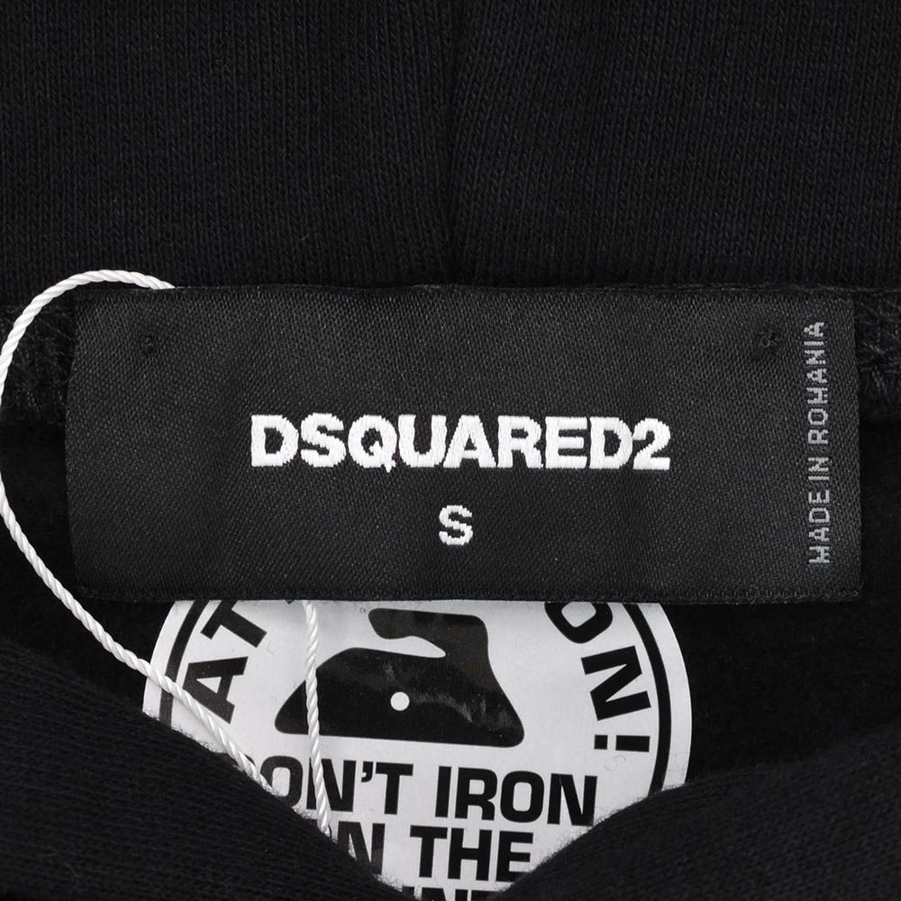 ディースクエアード DSQUARED2 プルオーバーパーカー メンズ コットンスウェット地 裏起毛 ブラック バッグプリント 2重フード レギュラーフィット ブランドロゴ 国内正規品 でらでら 公式ブランド